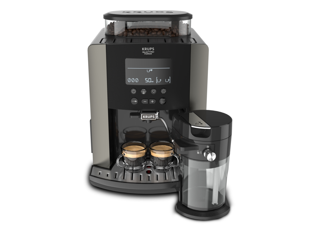 • Системата Quattro Force обхваща всяка стъпка за перфектно еспресо: предлага оптимално смилане, уплътняване, приготвяне и автоматично почистване.