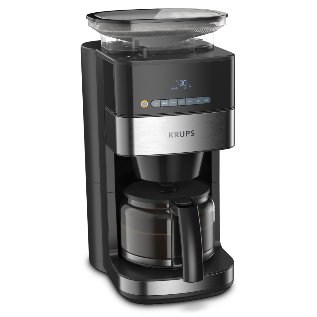 Кафемашината KRUPS Grind and Brew с мелачка осигурява най-доброто гурме кафе с автоматичен процес на смилане и приготвяне без усилия за безупречно кафе, преливащо от вкус и аромат. Оборудвана с висококачествена конична мелачка, усъвършенствани функции и лесни за използване настройки за регулиране на количеството и силата, Grind and Brew ви позволява да започнете деня си с несравнимия вкус на прясно смляно кафе по-лесно от всякога.