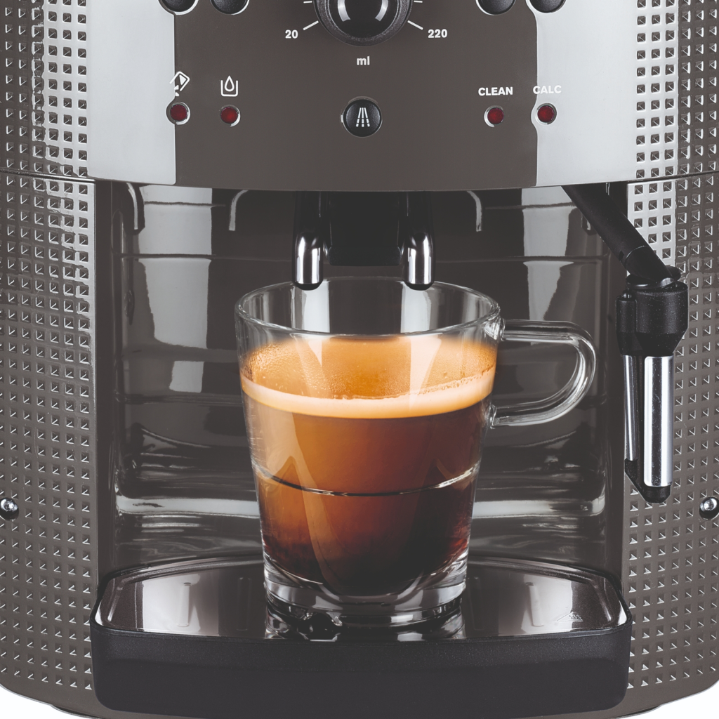 Мечтаете ли си за изцяло автоматична машина за еспресо, която предлага великолепен вкус, истински аромат и несравнимо преживяване в чаша кафе? Със серията KRUPS Essential открийте елегантна, ефикасна, надеждна машина на достъпна цена - всичко комбинирано в едно. Лесна за използване благодарение на контролния панел, степента на смилане, обемът на напитката и дори температурата на машината могат да бъдат настроени към вашия вкус за изцяло персонализирано изживяване в чаша кафе. Същевременно тази компактна машина е без компромиси с вместимостта благодарение на 260гр контейнер за кафе и 1,7л резервоар за вода за до 9 перфектно балансирани напитки, без необходимостта от изпразване.