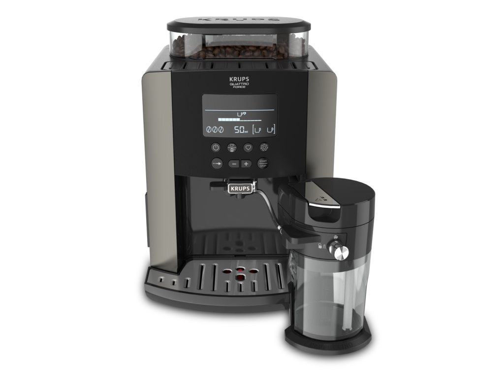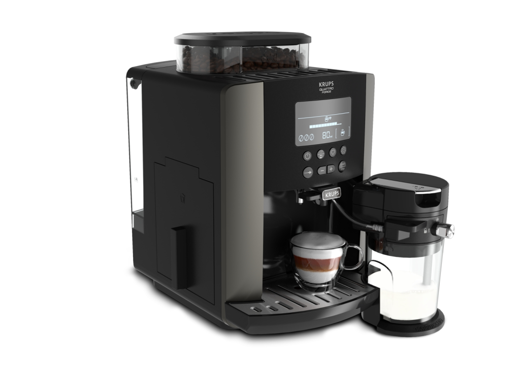 Кафеавтоматът KRUPS Arabica Latte осигурява кафенаптики с изключително качество и гарантира резултати на ниво бариста за всички ваши любими кафе специалитети - от плътно RISTRETTO (ристрето) и LUNGO (лунго) до неустоимо кремообразно капучино. С опростената система за мляко приготвянето на перфектната млечна пяна за вашето пухкаво лате е на една ръка разстояние. Големият LCD екран прави работата с кафеавтомата изключително лесно за потребителя. Технологията KRUPS Quattro Force осигурява перфектни резултати още от първата чаша - оптимално смилане, перфектно уплътняване, извличане на екстракта oт кафето и автоматично почистване. С възможност за запаметяване на до 4 персонализирани рецепти: 2 еспресо и 2 млечни.