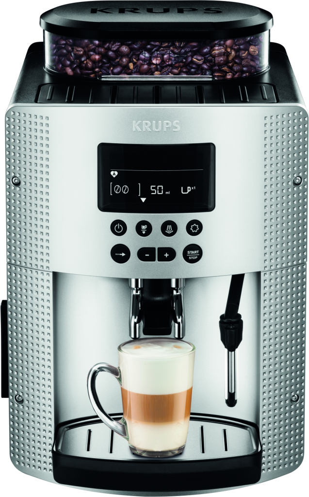 С автоматичната машина за еспресо Essential Krups се насладете на перфектно балансиран аромат на кафе и еспресо, получено от кафеното зърно до чашата.