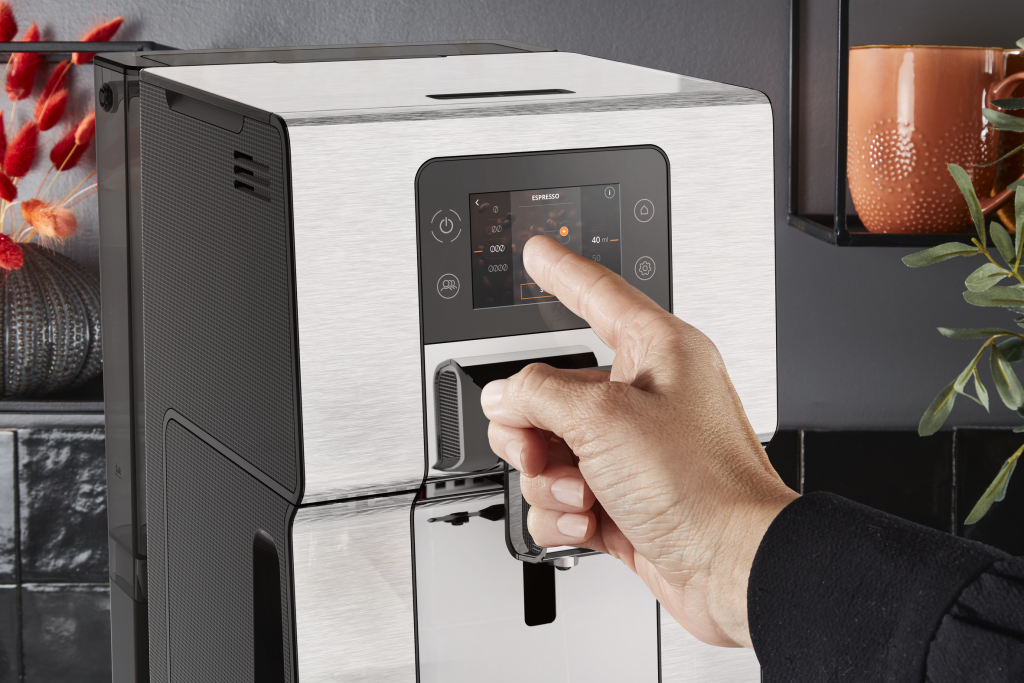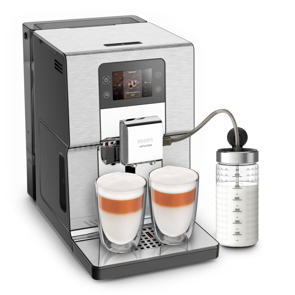 Независимо дали става въпрос за перфектно еспресо, пенливо капучино или ледено фрапе, Intuition Experience + Bean-to-Cup Coffee Machine обещава напитки с качество на бариста у дома. Цветният сензорен екран и интуитивните светлинни индикатори ще ви насочат през завладяващото кафе изживяване, докато намалените нива на звука предлагат допълнителен комфорт. С директен достъп до повече от 20 топли и студени напитки, тази кафемашина от неръждаема стомана предлага до 4 интензитета на кафе и 8 профила за подобрена персонализация.
